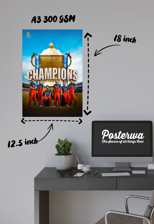 Gear up with Posterwa’s 'RCB Cricket Team' collection, your ultimate destination for Royal Challengers Bangalore (RCB) merchandise! Celebrate your favorite cricket team with our exclusive range of products designed for true fans. From vibrant RCB Cricket Team Posters to stylish keychains, this collection features everything you need to showcase your support. Whether you’re looking to decorate your space with iconic team posters or add some team spirit to your accessories, we’ve got you covered. Our RCB Cricket Team merch captures the excitement and passion of cricket, making it the perfect addition to any fan’s collection. Dive into the world of RCB and bring the thrill of the game right to your home!