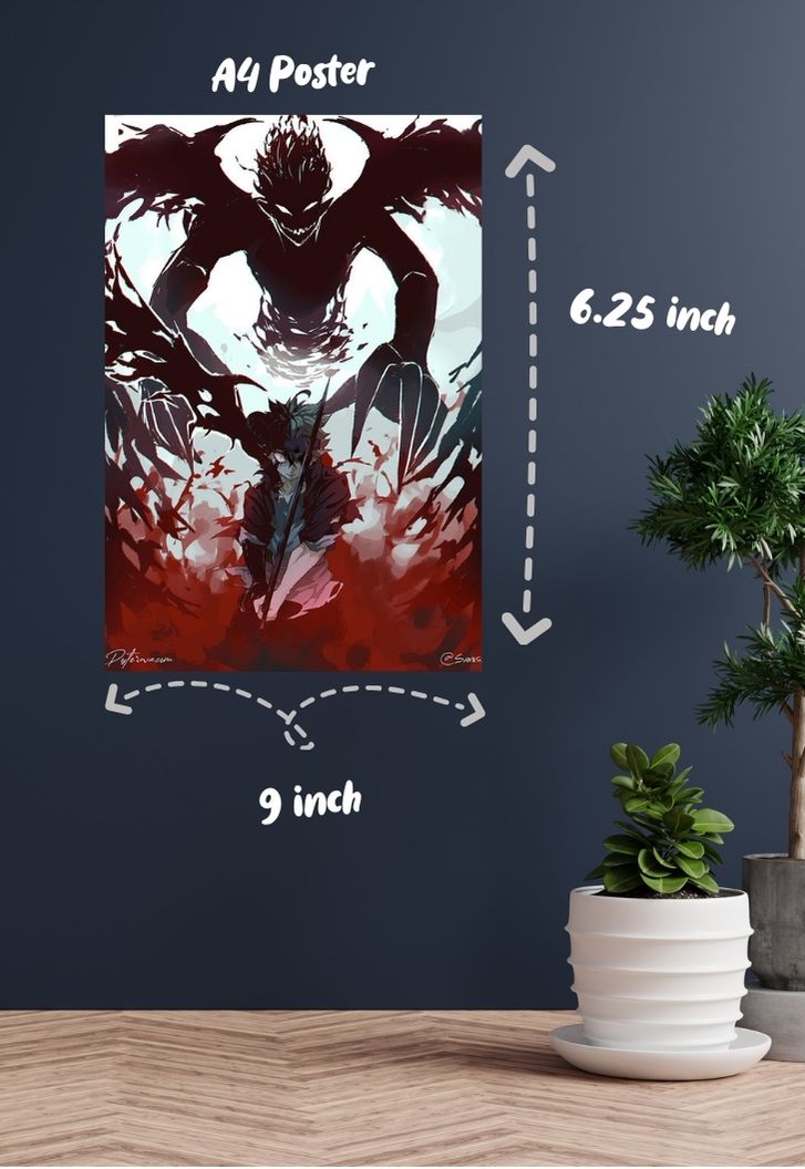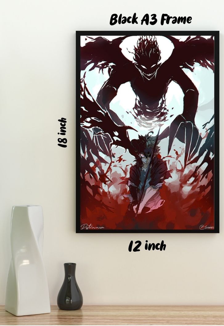 Dive into the mysterious world of magic and darkness with Posterwa's captivating Asta's devil headshot poster! Featuring intricate details and spellbinding artistry, this poster transports you to the heart of the fandom's enchanting lore. Printed on glossy 300 GSM Gold Coin Paper with the highest quality printer, every line and shadow of Asta's devil is brought to life in stunning clarity. Channel the power of magic and mystery as you display this poster proudly among your collection. Let Asta's devil headshot ignite your passion for the fandom and unlock new realms of imagination!