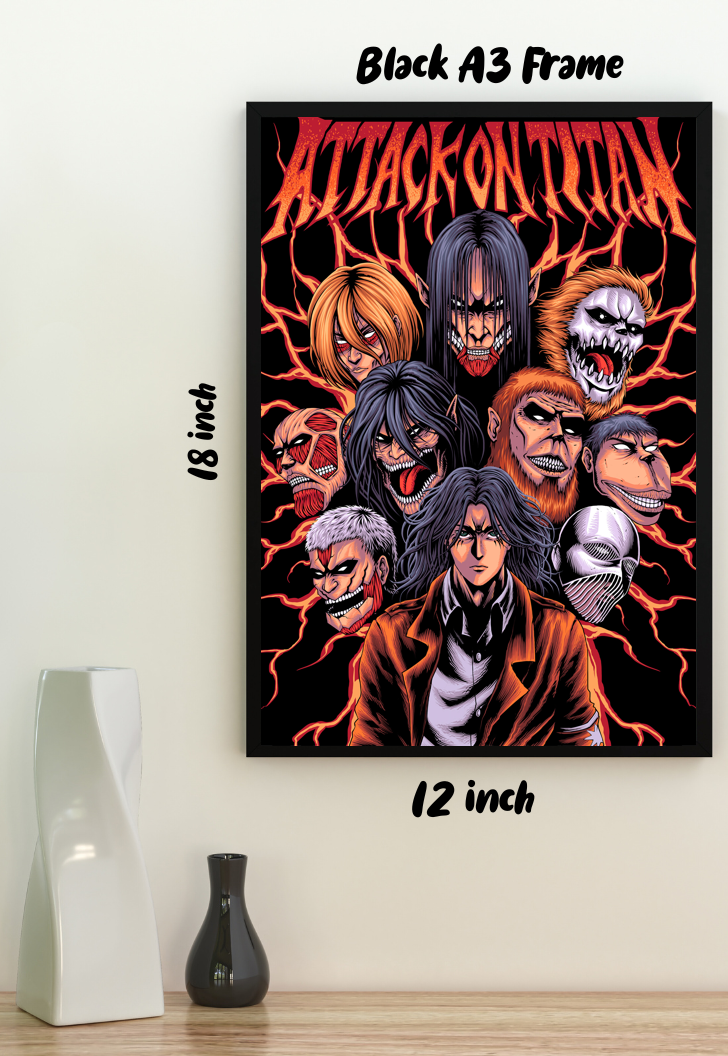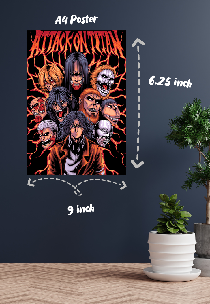 Immerse yourself in the epic world of Attack on Titan with this striking anime poster featuring Eren Yeager alongside all Titans. Perfect for fans, it captures the intensity and drama of the series, making it a bold statement piece for any room. Elevate your space with this dynamic artwork that celebrates one of anime’s most iconic characters and moments.