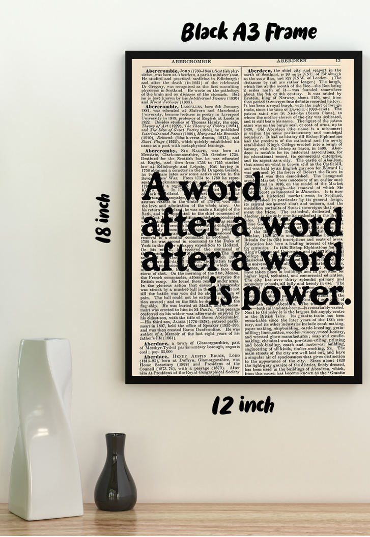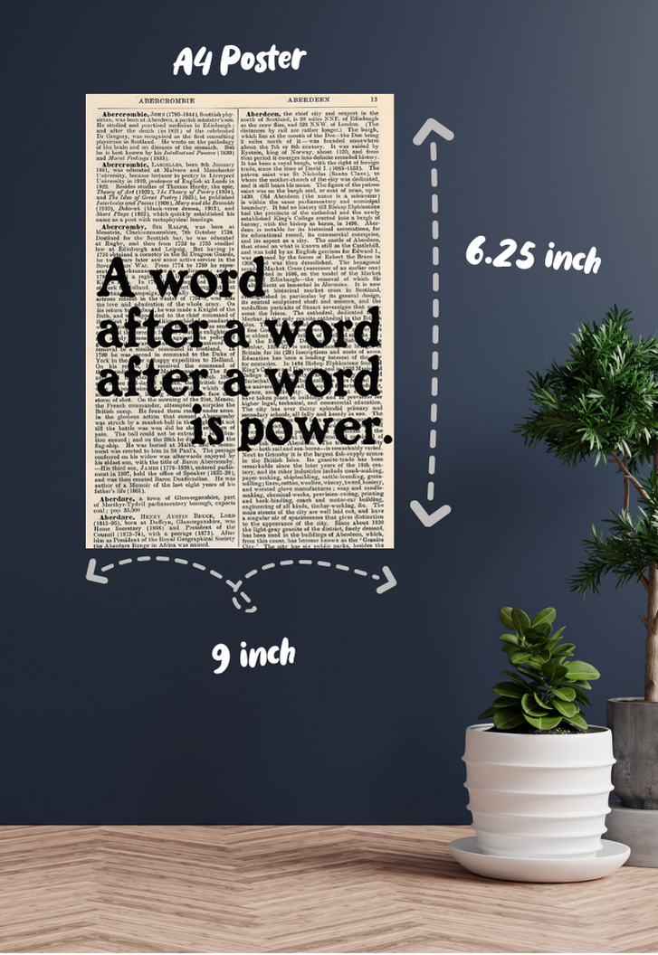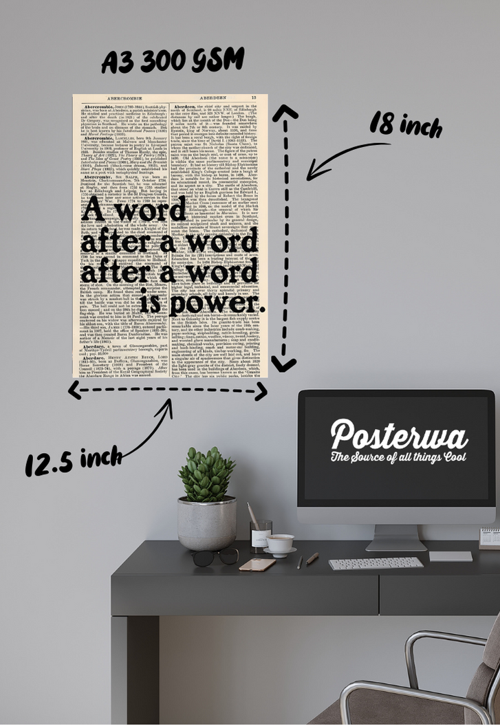 Step into the poetic realm of literary fandom with our "A word after a word is power" poster, where each line resonates with the essence of creative might. Crafted on glossy 300 GSM Gold Coin Paper, this poster is a tribute to the power of words within the vast universe of literature. Printed with precision using our highest quality printer, it captures the subtle nuances of expression that fans of eloquence and storytelling cherish. Let this poster adorn your space, inspiring and reminding you of the transformative power that every word holds. Embrace the magic of language and immerse yourself in the world of literary fandom with Posterwa.
