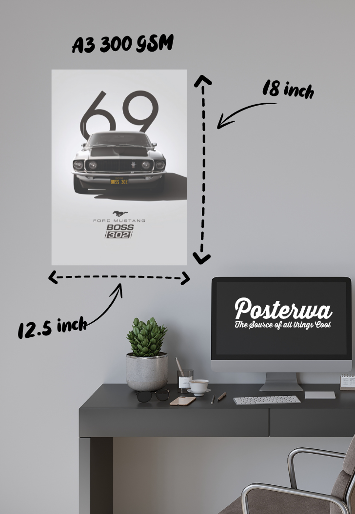 Step into the roaring world of automotive legends with our Ford Mustang GT Car poster! Feel the rumble of raw power and the sleek lines that define this iconic machine. This poster captures every detail, from the signature grille to the racing stripes, celebrating the heart of true fandom. Printed on glossy 300 GSM Gold Coin Paper with the utmost precision, it's a masterpiece that brings your passion to life. Unleash the spirit of the Mustang and adorn your space with this tribute to automotive excellence!