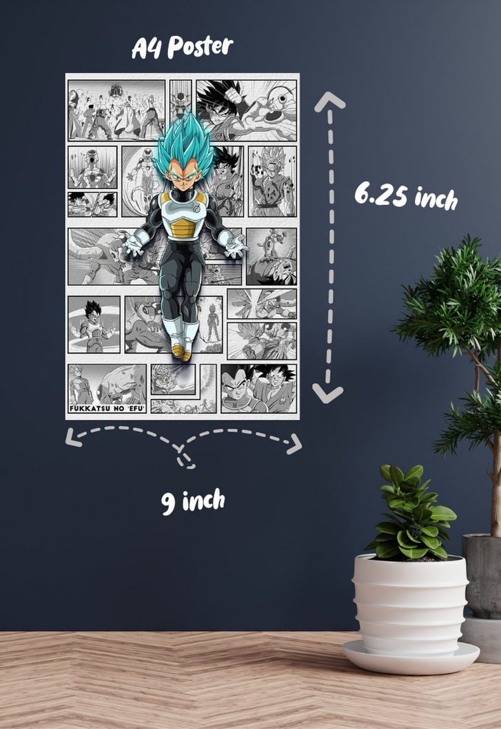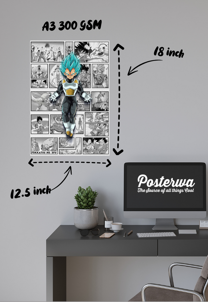 Transform your space into a battleground of power and pride with our stunning Vegeta poster. Printed on glossy 300 GSM Gold Coin Paper using the finest quality printer, this poster captures every detail of the Saiyan Prince in all his glory. With intense colours that leap off the page and a design that pays homage to Vegeta's legendary status in the Dragon Ball universe, this poster is a must-have for any fan. Whether you're a long-time follower or just discovering the thrill of Saiyan strength, this artwork brings the essence of the fandom right into your room.
