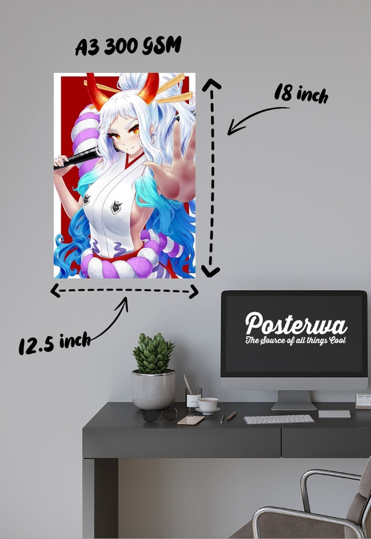 Discover the legendary might of Yamato in this striking poster from Posterwa! Yamato, the embodiment of strength and honour, stands tall amidst the chaos of battle, a testament to unwavering loyalty and indomitable spirit. Printed on glossy 300 GSM Gold Coin Paper with the highest quality printer, every detail of Yamato's fierce determination and iconic presence is vividly captured. Embrace the essence of the One Piece fandom with this captivating artwork, bridging the gap between fans and their beloved world of adventure. Add a touch of epic storytelling to your space with this stunning Yamato poster, a tribute to the enduring legacy of heroes..