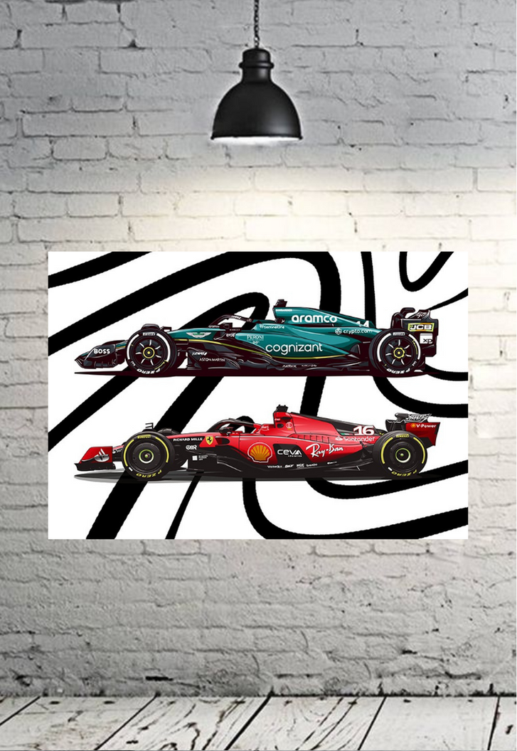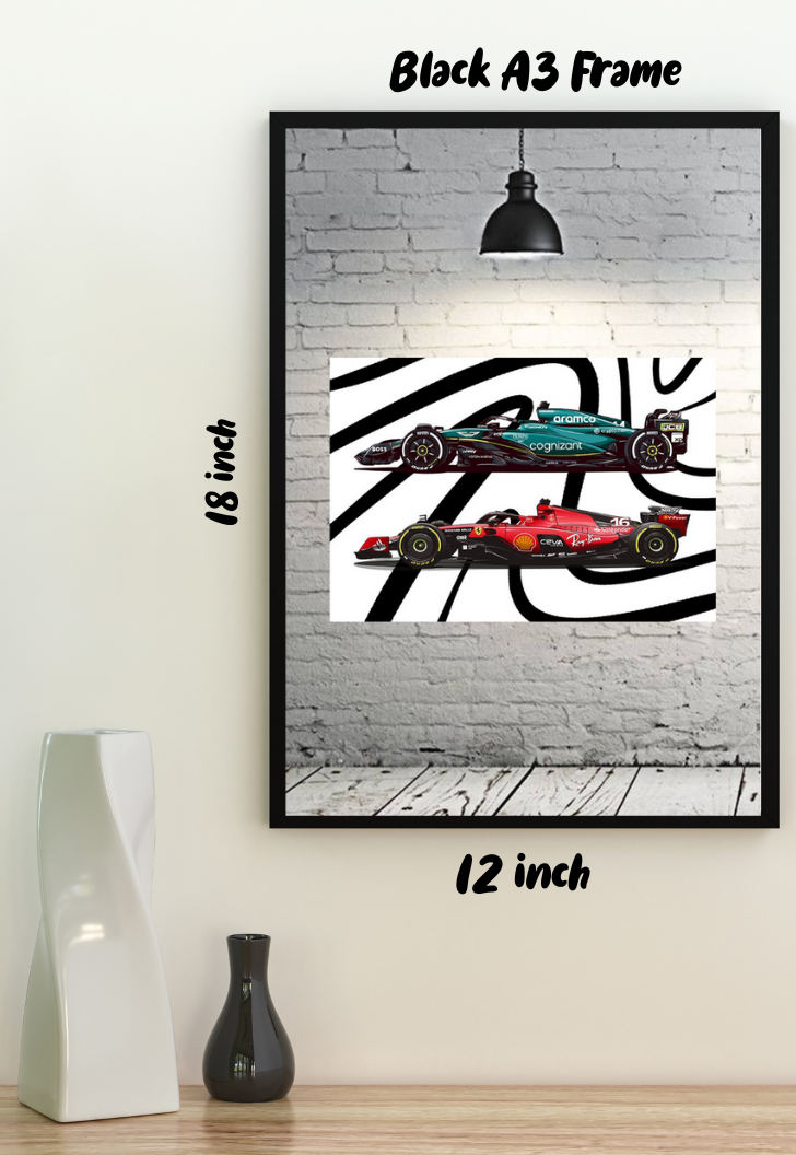 Dive into the heart-pounding world of F1 with our mesmerizing "F1 Benz And Ferrari" poster, where speed meets glory in a symphony of engines and adrenaline. Feel the rush as these iconic racing giants tear through the asphalt, leaving a trail of passion and precision in their wake. Printed on glossy 300 GSM Gold Coin Paper with the highest quality printer, every detail of this poster captures the essence of F1 fandom, bringing the thrill of the track right into your space. Whether you're a die-hard fan or simply admire the artistry of speed, this poster is a must-have for any F1 enthusiast's collection.