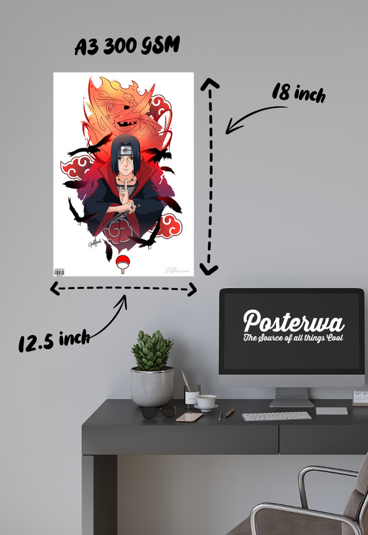 Unleash the power of darkness with our Itachi Uchiha Art poster! Dive into the depths of the Shinobi world with this stunning artwork, capturing every detail of Itachi's legendary presence. Printed on glossy 300 GSM Gold Coin Paper, our poster brings Itachi's story to life with unparalleled clarity and richness. Whether you're a devoted fan of the Naruto universe or simply admire the artistry of anime, this poster is a must-have for your collection. Let Itachi's enigmatic gaze and intricate design inspire your journey into the heart of fandom!