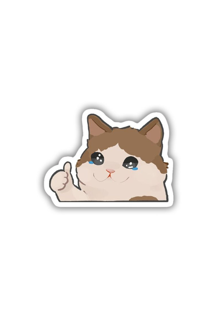 Crying-thumbs up Cat Meme Sticker