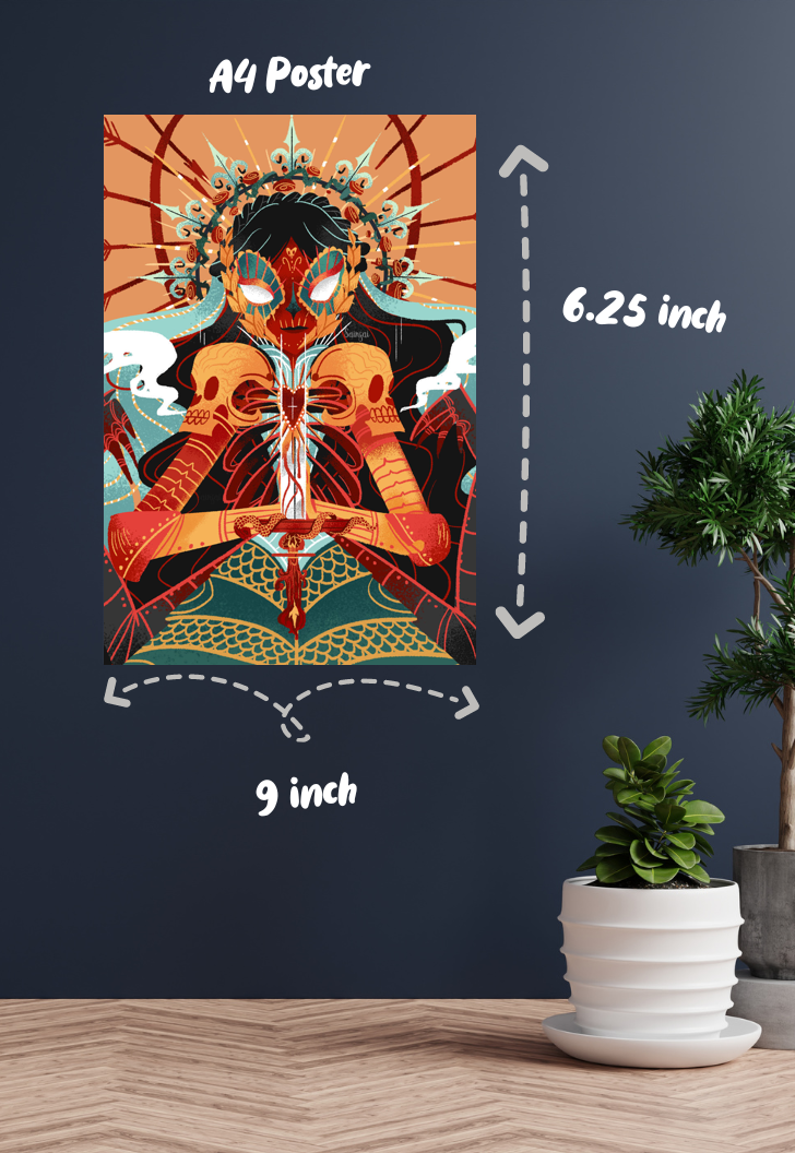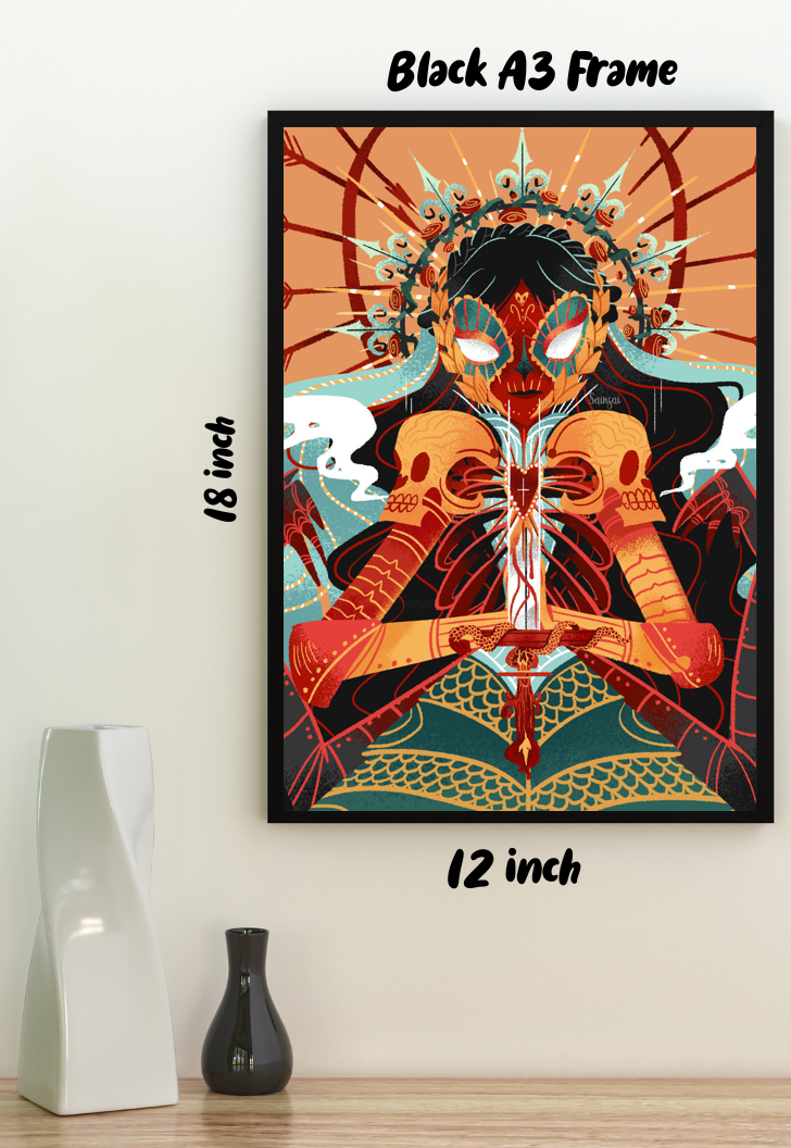 - Black-Framed A4 Poster: 156×225 mm, 300 GSM glossy paper with black fiberglass frame