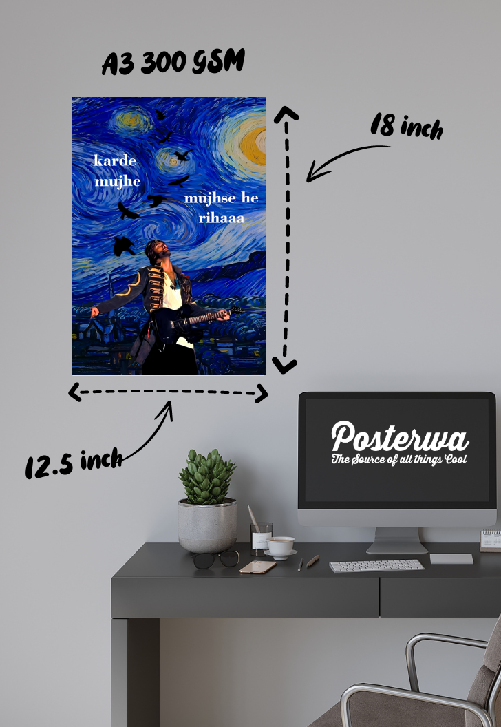At Posterwa, we live and breathe fandom. Our Kun Faya Kun Song Rockstar Bollywood Movie Poster collection is crafted with the highest quality standards, ensuring each piece is "made for fans, by fans." With strict quality checks in place, we guarantee a product that resonates with your passion. Dive into the world of Rockstar and let your walls sing with the spirit of Kun Faya Kun. Order now and let your fandom shine!