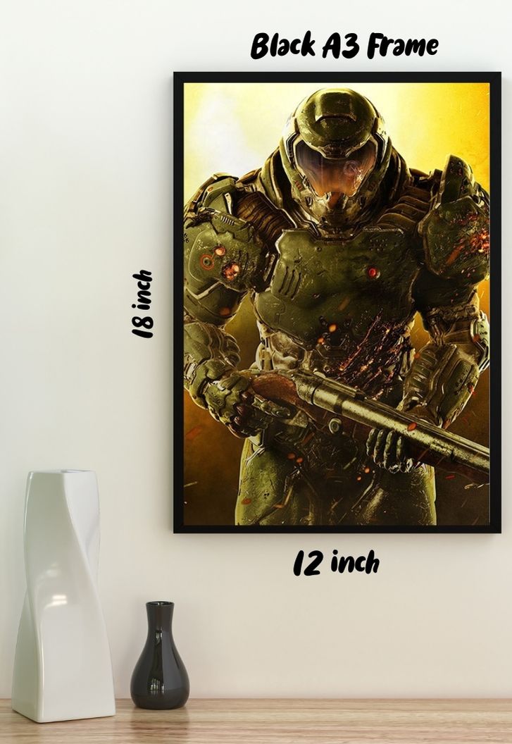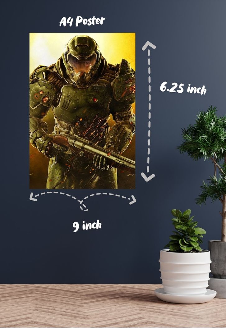 Unleash the unstoppable force of the Doom Slayer with this epic poster from Posterwa! Dive into the heart-pounding world of demon-slaying action as you bring the iconic hero to life in your space. Crafted on glossy 300 GSM Gold Coin Paper with our top-tier printer, every detail pops with vivid intensity, immersing you in the thrilling chaos of your favourite fandom. Embrace the power, feel the rush, and declare your allegiance to the Slayer with this dynamic addition to your collection. Let the battle begin!