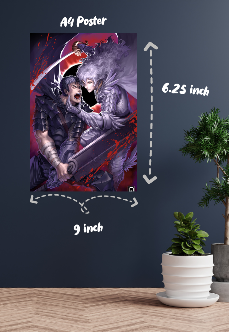 At Posterwa, we live and breathe fandom. Our "made for fans, by fans" ethos ensures that every product undergoes strict quality checks to meet your high standards. Join our community of passionate fans and bring the world of "Guts and Griffith" to life in your own space. Order now and let your walls tell the story!