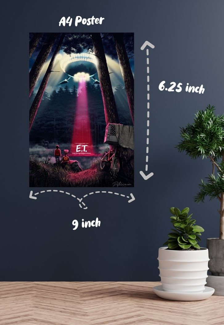 Step into the enchanting world of E.T with our captivating poster, "E.T Title." Let your imagination soar as you relive the timeless magic of this beloved fandom. Printed on glossy 300 GSM Gold Coin Paper with unparalleled clarity, every detail of this poster shines with the essence of your favourite extra terrestrial adventure. Whether you're a long-time fan or discovering the wonder of E.T for the first time, this poster is a must-have addition to your collection. Embrace the nostalgia, feel the warmth of friendship, and journey beyond the stars with "E.T Title" from Posterwa.