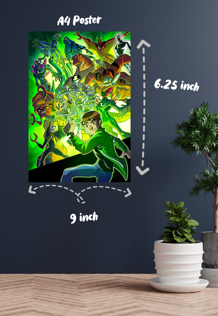 At Posterwa, we live and breathe fandom. Our Ben Ten Alien Posters are crafted with a fan-first ethos, ensuring every piece meets our strict quality checks. Made for fans, by fans, these posters are more than just decor—they're a celebration of your favorite series. Dive into the world of Ben Ten and let your walls tell the story. Order now and join the adventure!
