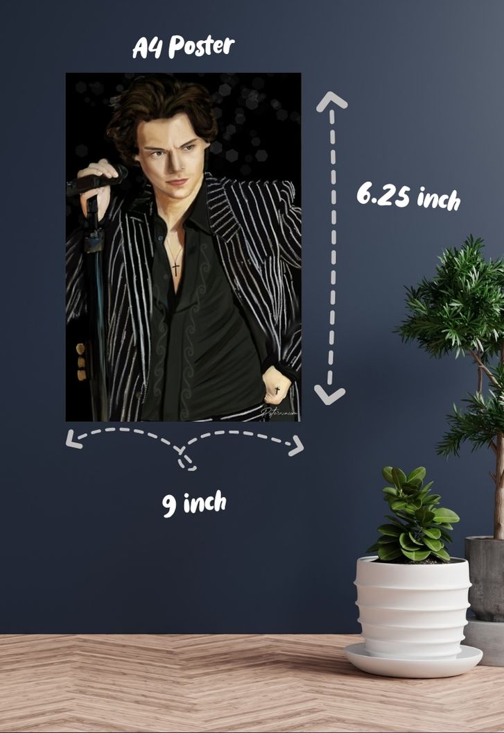Step into the enchanting world of Harry Styles with Posterwa's mesmerizing poster! This artwork captures the essence of fandom devotion, bringing to life the charisma and talent of your favourite idol in vivid detail. Printed on glossy 300 GSM Gold Coin Paper with the highest quality printer, this poster is a must-have for every fan's collection. Let Harry's music and style inspire you as you immerse yourself in the magic of his fandom. With each glance at this poster, feel the connection and excitement that only true fandom can bring. Join the celebration of Harry Styles and showcase your love proudly!