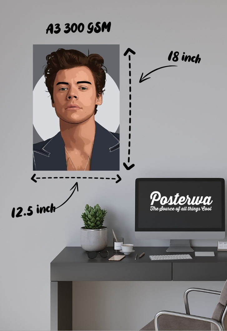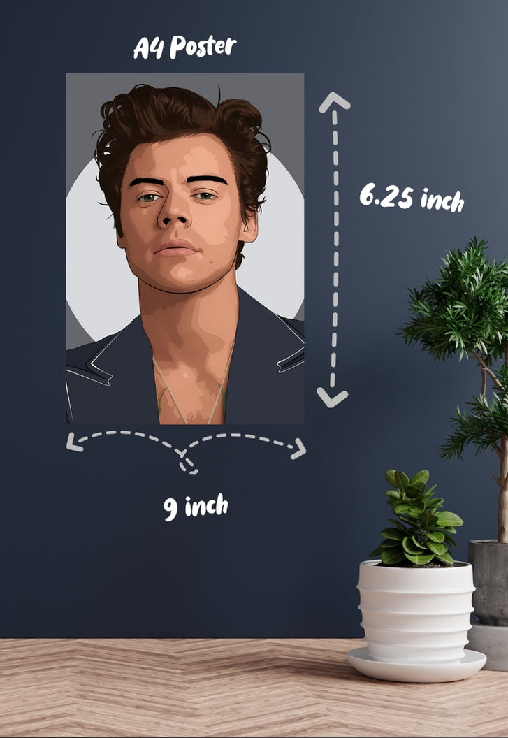 Step into the enchanting world of Harry Styles with our Harry Styles Art poster from Posterwa! Let the magic of his music and style adorn your space, bringing a touch of fandom flair to your walls. Printed on glossy 300 GSM Gold Coin Paper with the utmost care and precision, this poster captures every detail of Harry's artistic essence. Whether you're a die-hard fan or simply appreciate great art, this poster is a must-have for your collection. Embrace the fandom and showcase your love for Harry Styles with this stunning piece!