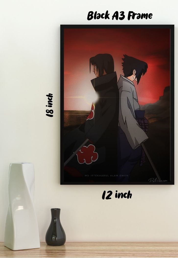 Step into the mesmerizing world of Itachi and Uchiha with Posterwa's captivating poster! This artwork beautifully encapsulates the bond and complexity of this iconic duo, perfect for fans immersed in the depths of the Uchiha clan's legacy. Printed on glossy 300 GSM Gold Coin Paper using the highest quality printer, every detail shines vividly, bringing the characters to life in stunning clarity. Whether you're a devoted follower of the series or simply admire their story, this poster is a must-have addition to your collection. Embrace the power, embrace the emotion—let Itachi and Uchiha fuel your fandom passion!