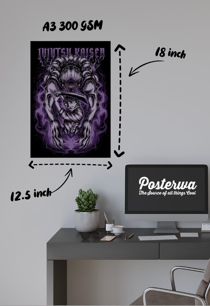 Unleash the supernatural power of Jujutsu Kaisen with this captivating poster from Posterwa! Immerse yourself in the thrilling world of curses, sorcery, and epic battles depicted in vivid detail. Crafted on glossy 300 GSM Gold Coin Paper, this poster brings every detail to life with stunning clarity, making it a must-have for any Jujutsu Kaisen fan's collection. Whether you're drawn to Yuji Itadori's unwavering determination, Megumi Fushiguro's mysterious techniques, or Satoru Gojo's unmatched prowess, this poster celebrates the essence of the Jujutsu Kaisen fandom. Elevate your space with the essence of this dynamic anime and showcase your love for this captivating series!