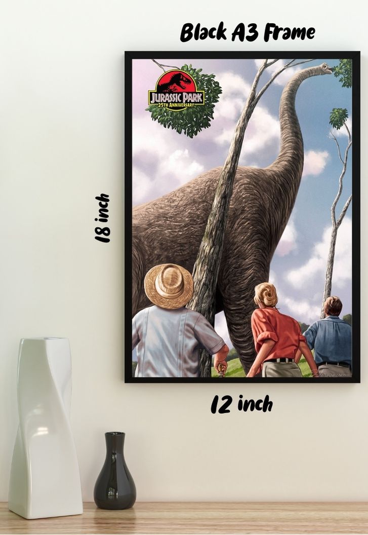 Step into a prehistoric adventure with Posterwa's captivating Jurassic Park cover poster! Immerse yourself in the awe-inspiring world of dinosaurs, where ancient giants roam and excitement knows no bounds. Printed on glossy 300 GSM Gold Coin Paper with the highest quality printer, every detail of this poster pops with cinematic brilliance. Feel the thrill of the hunt, the wonder of discovery, and the pulse-pounding excitement that only the Jurassic Park fandom can deliver. Whether you're a palaeontology enthusiast or a fan of thrilling adventures, this poster is a must-have addition to your collection. Get ready to journey back in time and experience the magic of Jurassic Park!