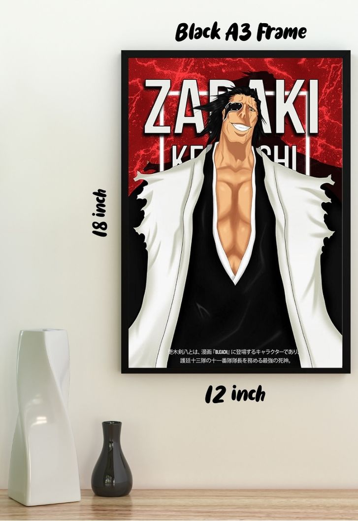 Unleash the raw power of Kenpachi Zaraki with this striking poster from Posterwa! Capturing every detail of his fierce presence, this poster is a must-have for any Bleach fan. Printed on glossy 300 GSM Gold Coin Paper using top-notch printers, it ensures vibrant colours and sharp imagery. Whether you're a long time follower of the Soul Society or just discovering the world of Bleach, this poster brings the spirit of fandom to life. Add it to your collection and let Kenpachi Zaraki's relentless strength inspire you every day!