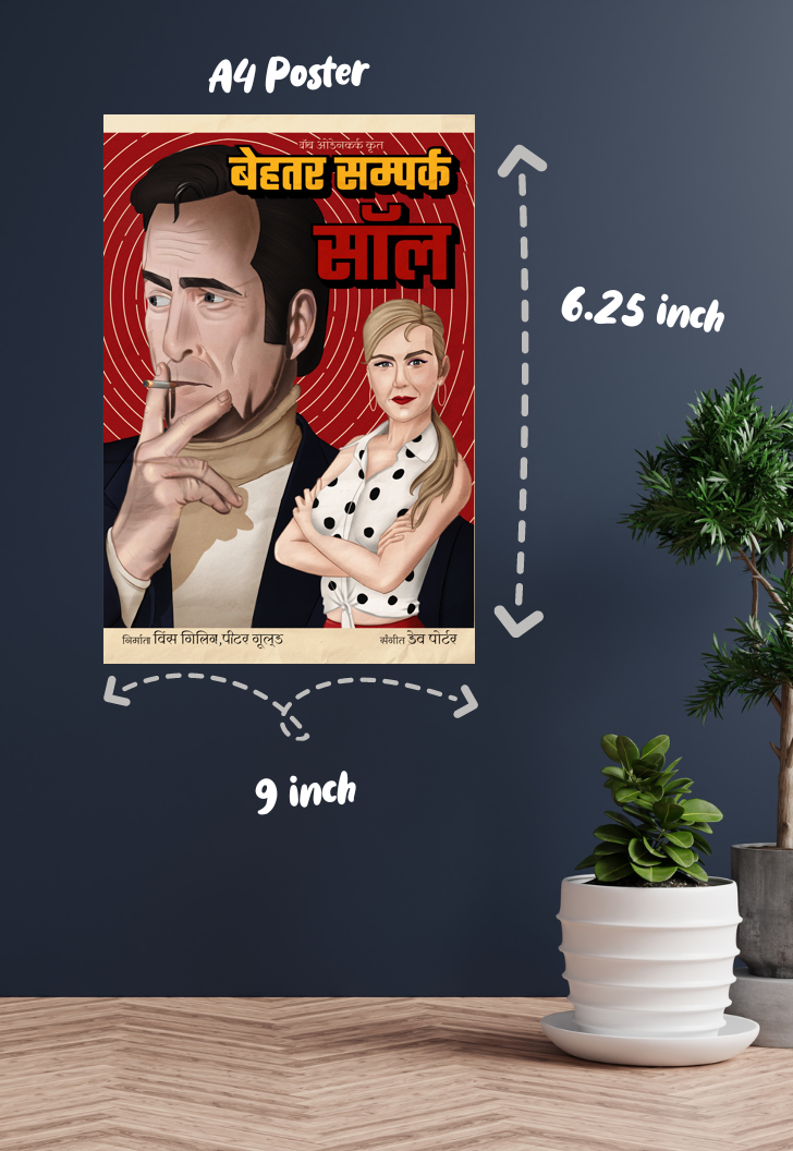 Unleash your inner fan with the Behtar Sampark Saul comic style Fanart Better Call Saul Poster! This vibrant piece captures the essence of your favorite legal drama with a unique twist, perfect for any fan's collection. Delivered PAN-India, this poster arrives in a cute, sturdy triangle box that doubles as a gift, eliminating the need for extra wrapping. Whether you're treating yourself or surprising a fellow fan, this packaging ensures your poster arrives in style and ready to impress.