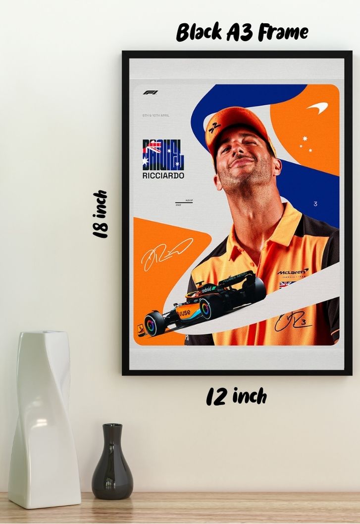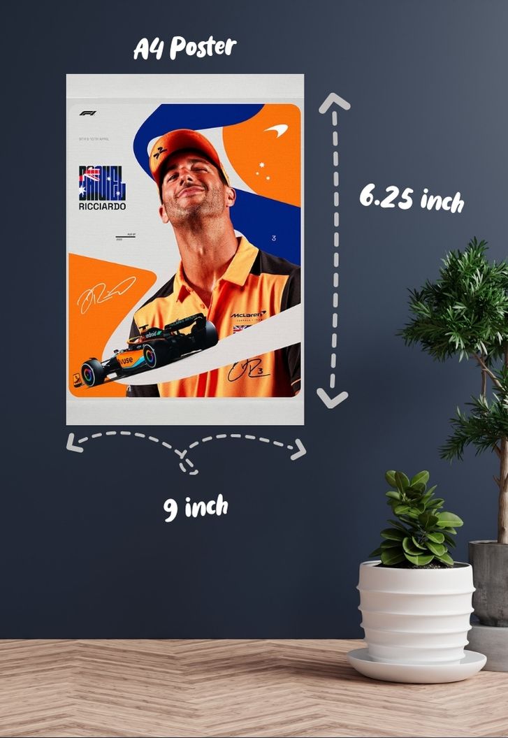 Rev up your fandom spirit with Posterwa's electrifying McLaren: Daniel Ricciardo poster! Step into the fast-paced world of Formula 1 as you admire the iconic McLaren racing car and the legendary driver himself. Printed on glossy 300 GSM Gold Coin Paper with the utmost precision, this poster captures every detail of speed and adrenaline, making it a must-have for any motorsport enthusiast. Whether you're a die-hard Ricciardo fan or simply love the thrill of the track, this poster is a celebration of passion, speed, and the exhilarating world of Formula 1. Let your walls reflect your racing spirit with Posterwa's McLaren: Daniel Ricciardo poster!