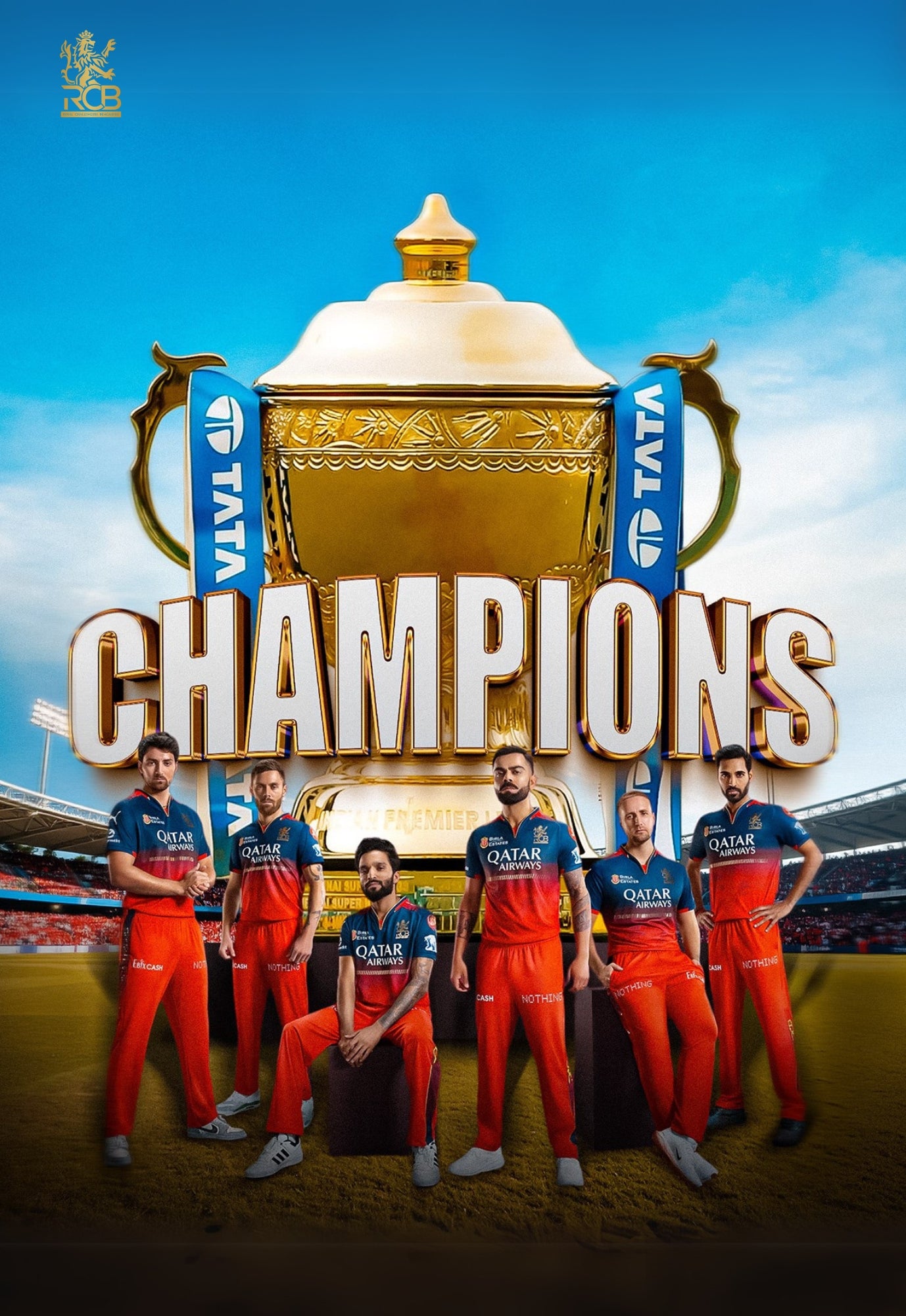 Celebrate the historic victory with our exclusive RCB 2025 Champions poster! This commemorative piece captures the triumphant moment when Royal Challengers Bangalore finally claimed their well-deserved title. Perfect for die-hard fans who want to immortalize this landmark achievement and showcase their unwavering team loyalty. Don't miss owning this piece of cricket history!
