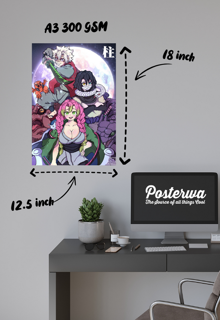 Channel the Hashira heat with this electrifying trio in one powerful frame! Whether you're team Tsundere Wind, Snake Eyes, or Love Breather, this poster is your one-way ticket to breathing life (and chaos) into your wall. Styled like an iconic Sannin showdown, this piece is a tribute to raw strength, unbreakable bonds, and fan-favorite drama. Your room deserves that anime main character energy—and this poster delivers.