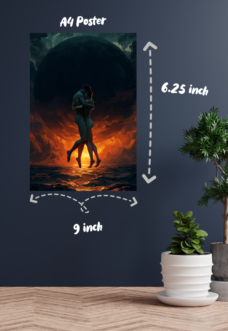 - Black-Framed A4 Poster: 156×225 mm, 300 GSM glossy paper with black fiberglass frame