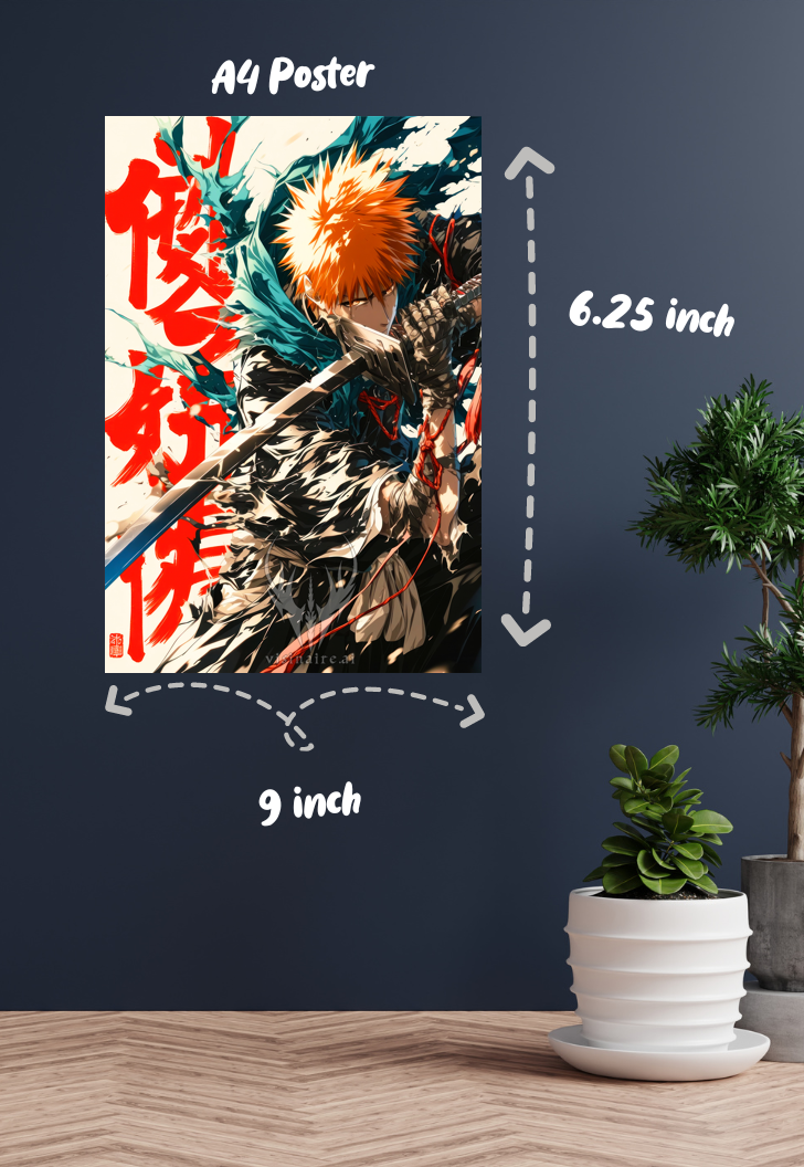 Unleash your inner Shinigami with our exclusive Ichigo Fanart collection, a must-have for any anime enthusiast! Dive into the world of Soul Reapers with these stunning posters that capture the essence of your favorite character. Delivered PAN-India, these artworks arrive in a charming, sturdy triangle box that’s as cute as it is practical, doubling as a perfect gift package with no extra wrapping needed. Whether you're decorating your room or gifting a fellow fan, this collection is sure to impress.