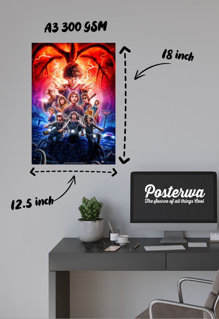 Dive into the nostalgic world of Hawkins with Posterwa's captivating Stranger Things Season 1 poster! Relive the spine-tingling adventures of Eleven, Mike, and the gang as they uncover supernatural mysteries in the 80s-themed backdrop. This poster, printed on glossy 300 GSM Gold Coin Paper with precision by our top-quality printer, immerses you in the eerie charm of the Upside Down. With iconic keywords like "demogorgon," "Eleven," and "telekinesis" subtly woven into the design, every glance sparks excitement and curiosity. Bring home a piece of fandom magic and let the Stranger Things universe ignite your imagination!