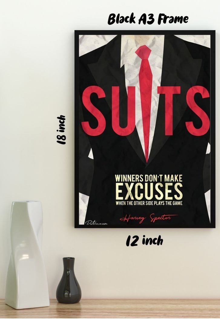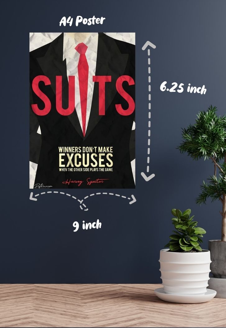 Elevate your space with Posterwa's captivating Suits Quote poster! Immerse yourself in the world of sharp wit and legal prowess with this iconic quote, perfectly capturing the essence of the fandom. Printed on glossy 300 GSM Gold Coin Paper with the highest quality printer, every detail shines with brilliance, making this poster a must-have for any fan. Whether you're a legal eagle or a fan of clever banter, let this poster be your daily inspiration. Step into the courtroom of fandom greatness and showcase your love for Suits in style!