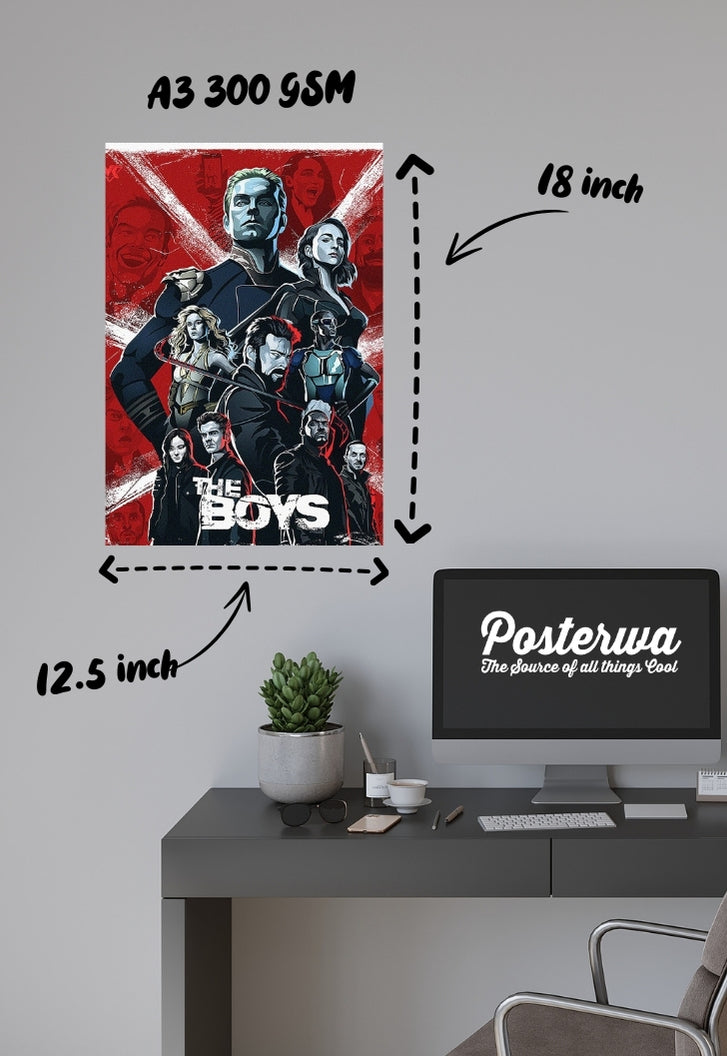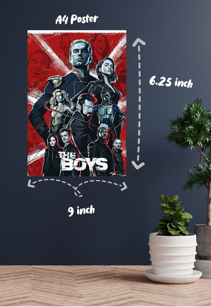 Step into the gritty world of The Boys with this stunning art poster! Capturing the essence of antiheroes and superpowers, this poster brings to life the edgy and dark tones of the fandom. Printed on glossy 300 GSM Gold Coin Paper with the highest quality printer, every detail pops with vibrant colours and sharp clarity. Whether you're a fan of Vought's superheroes or rooting for the underdogs, this poster is a must-have for your collection. Dive into the complexities of power, corruption, and redemption, all encapsulated in this dynamic artwork. Upgrade your space with The Boys Art poster and show your allegiance to the thrilling world of supes and vigilantes!