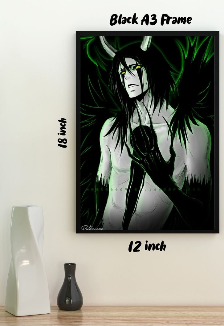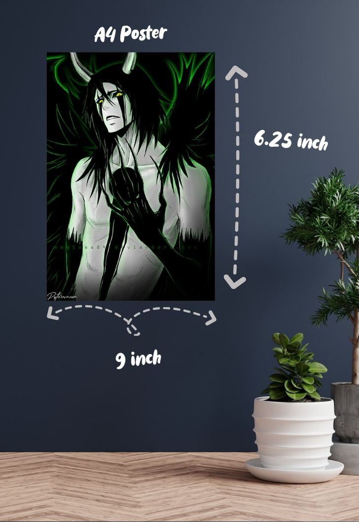 Step into the dark allure of the Espada with Posterwa's mesmerizing Ulquiorra Cifer poster! This masterpiece captures the enigmatic charisma and raw power of one of the most iconic characters in fandom history. Printed on glossy 300 GSM Gold Coin Paper with unparalleled precision, every detail of Ulquiorra's piercing gaze and intricate design is brought to life, making this poster a must-have for any fan. Embrace the shadows and immerse yourself in the world of supernatural battles with this stunning tribute to the Espada saga. Let Ulquiorra's presence adorn your walls and ignite your passion for the fandom!