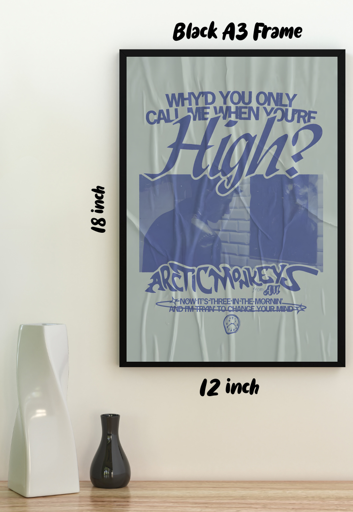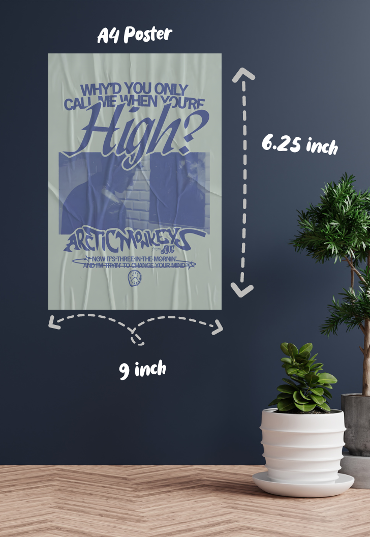 Get ready to elevate your space with the "Why would you only call me when you're high | Arctic Monkeys | Bands Poster." This stunning piece of art captures the essence of one of the most iconic bands of our time. Perfect for music lovers and Arctic Monkeys fans, this poster is a must-have for any collection. Delivered PAN-India, it arrives in a cute, sturdy triangle box that doubles as a gift, eliminating the need for extra wrapping. Whether you're treating yourself or surprising a fellow fan, this poster is sure to impress.