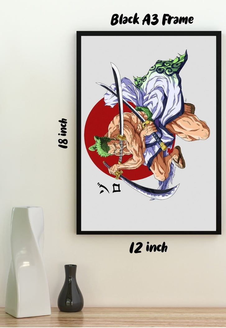Unleash the warrior spirit with our Zoro with Swords poster from "Posterwa"! Dive into the world of fierce battles and unyielding determination with this stunning artwork. Printed on glossy 300 GSM Gold Coin Paper, every stroke of Zoro's swords comes alive with the highest quality printer, capturing the essence of your favourite fandom in exquisite detail. Perfect for any fan's collection, this poster brings the epic adventures of your beloved character right into your space, making every day an adventure in itself. Join Zoro on his quest for greatness, and let your walls tell the tale of bravery and strength!